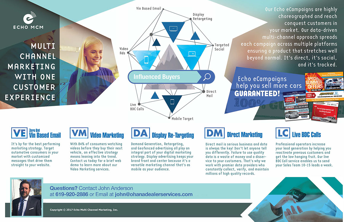 Advantage Dealer Services helps clients generate sales by delivering a consistent message across multiple marketing channels. That means effectively reaching potential buyers along their purchase paths. Whether it’s email, a display ad, video, or a live call, Advantage helps you be there when buyers are looking.